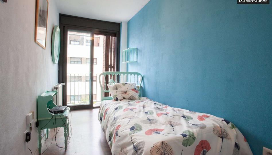 Este es un apartamento de 4 dormitorios en la calle Clarinetes, Madrid. Tiene una habitación acogedora con acceso a un balcón en la hermosa casa de la casera.