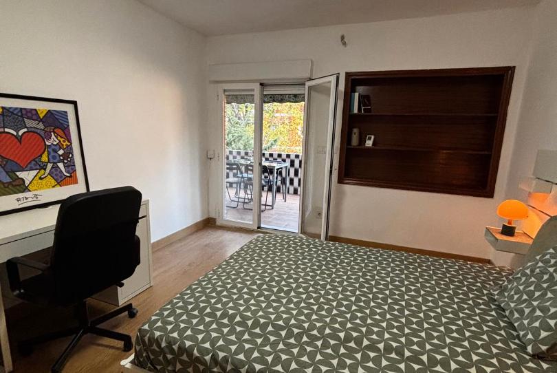 ¡Bienvenido a tu nuevo hogar! Esta espaciosa habitación en una tercera planta con ascensor ofrece 120 m² de confort y tranquilidad, perfecta para estudiantes y jóvenes profesionales que buscan un ambiente amistoso y acogedor. La habitación cuenta con un mobiliario completo que incluye armario, mesilla de noche, escritorio y silla, ideal para estudiar o trabajar desde casa con una terraza estupenda.