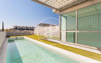 CHALET ADOSADO CON ASCENSOR Y PISCINA PRIVADA EN LA AZOTEA EN VALDEMARÍN Chalet adosado de diseño con piscina privada en cubierta. Esta vivienda única de 340 m² combina diseño contemporáneo, luminosidad y confort en cada rincón. En la planta principal, un amplio salón-comedor con salida directa al jardín se convierte en el corazón de la casa. La cocina, totalmente amueblada, conecta también con el exterior, creando un espacio perfecto para disfrutar dentro y fuera. Un aseo de cortesía completa la planta. La primera planta está pensada para la vida familiar. El dormitorio principal cuenta con un gran vestidor y baño en suite. Los otros dos dormitorios, luminosos y con persianas mecanizadas, comparten baño y un espacio polivalente entre ellos, ideal como despacho o sala de estar. En la cubierta, la sorpresa!: una piscina privada rodeada de zona para tumbonas, más una terraza semicubierta en un nivel inferior, perfecta para disfrutar del atardecer o reuniones inolvidables. La casa dispone de ascensor desde el sótano hasta la cubierta, facilitando la vida diaria. El sótano es mucho más que un garaje para dos coches grandes. Incluye lavandería, despensa, un dormitorio de servicio o invitados con baño, y dos enormes estancias abiertas a un luminoso patio inglés. Sus paredes de cemento visto le dan un aire urbano y sofisticado: aquí puedes imaginar un gimnasio, un cine en casa, un taller creativo o una sala de juegos. Es un espacio que inspira y se adapta a cualquier estilo de vida. Detalles que marcan la diferencia: suelo radiante con termostatos individuales, persianas mecanizadas en dormitorios y un diseño moderno donde la luz natural es protagonista absoluta. En resumen, un chalet que no solo ofrece comodidad y elegancia, sino también infinitas posibilidades para crear la vida que sueñas. ¿Te imaginas vivir aquí? Ref. VMO2509012