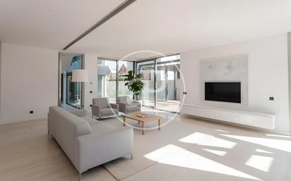CHALET ADOSADO CON ASCENSOR Y PISCINA PRIVADA EN LA AZOTEA EN VALDEMARÍN Chalet adosado de diseño con piscina privada en cubierta. Esta vivienda única de 340 m² combina diseño contemporáneo, luminosidad y confort en cada rincón. En la planta principal, un amplio salón-comedor con salida directa al jardín se convierte en el corazón de la casa. La cocina, totalmente amueblada, conecta también con el exterior, creando un espacio perfecto para disfrutar dentro y fuera. Un aseo de cortesía completa la planta. La primera planta está pensada para la vida familiar. El dormitorio principal cuenta con un gran vestidor y baño en suite. Los otros dos dormitorios, luminosos y con persianas mecanizadas, comparten baño y un espacio polivalente entre ellos, ideal como despacho o sala de estar. En la cubierta, la sorpresa!: una piscina privada rodeada de zona para tumbonas, más una terraza semicubierta en un nivel inferior, perfecta para disfrutar del atardecer o reuniones inolvidables. La casa dispone de ascensor desde el sótano hasta la cubierta, facilitando la vida diaria. El sótano es mucho más que un garaje para dos coches grandes. Incluye lavandería, despensa, un dormitorio de servicio o invitados con baño, y dos enormes estancias abiertas a un luminoso patio inglés. Sus paredes de cemento visto le dan un aire urbano y sofisticado: aquí puedes imaginar un gimnasio, un cine en casa, un taller creativo o una sala de juegos. Es un espacio que inspira y se adapta a cualquier estilo de vida. Detalles que marcan la diferencia: suelo radiante con termostatos individuales, persianas mecanizadas en dormitorios y un diseño moderno donde la luz natural es protagonista absoluta. En resumen, un chalet que no solo ofrece comodidad y elegancia, sino también infinitas posibilidades para crear la vida que sueñas. ¿Te imaginas vivir aquí? Ref. VMO2509012