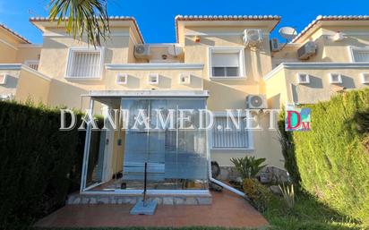 Precioso Adosado en Denia, con piscina comunitaria a tan solo 200m de la playa Deveses ! Este adosado dispone de parcela propia de 170m2 con jardín y parking privado. Tiene un total de 110m2 construidos, distibuidos en una terraza cubierta acristalada orientada hacia el Este, un amplio salón-comedor, una cocina equipada abierta, un baño con ducha en la planta baja y tres amplios dormitorios, ademas de un segundo cuarto de baño completo y terraza con vistas panorámicas. La casa incluye calefacción eléctrica. Todo ello en perfecto estado, y se vende amueblado y equipado.