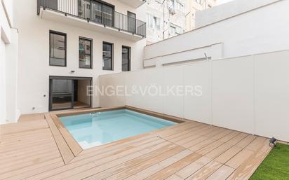 Engel & Völkers les presenta en exclusiva este estupendo edificio de solo 6 vecinos. Este amplio bajos tipo dúplex cuenta con 94 m2 construidos en su interior, 78 m2 útiles y una terraza con piscina y jardín con un total de 50 m2. Al acceder a la vivienda se encuentra un dormitorio de 9 m2 con doble altura en donde podras tener un estupendo estudio o una moderna habitacion con altillo y con vistas al tranquilo paseo. Al otro lado del piso se encuentra un luminoso salón comedor con cocina abierta de 20 m2 que se integra a la terraza lo cual le da mayor amplitud al espacio. Una terraza ideal para disfrutar durante todo el año que además cuenta con piscina privada. En la planta alta se encuentra una espectacular habitación suite con vestidor y baño con ventilacion natural, ambos con vistas sobre la terraza lo cual hace una habitación muy tranquila y luminosa. Este edificio cuenta con excelentes acabados, cocinas modernas con horno, microondas y placa de inducción incluido. La climatización del piso es con Aerotermia, con aire acondicionado y calefacción por conductos. Si desea más información de este fabuloso duplex con una ubicación única, no deje de contactar con su asesor de Engel & Völkers o través de este anuncio para concertar una visita a tu nuevo hogar. Tour virtual: https://floorfy.com/es/tour/2472350?play=no Este estupendo edificio se encuentra ubicado en el distrito de Gracia, específicamente en el barrio de Camp d'en Grassot. Un barrio situado entre los barrios del Eixample, Sagrada Familia y la Vila de Gràcia, con zonas muy demandadas y una excelente oferta gastronómica, cultural, de entretenimiento y con todos los servicios necesarios para disfrutar de una excelente calidad de vida. A pocos metros se encuentra el Passeig Sant Joan, considerado por Time Out en 2021 como la 2ª mejor calle del mundo, así como la emblemática Sagrada Familia ícono de Barcelona. A poca distancia, también encontraremos el Mercado de la Abacería, la Avenida Diagonal y el Hospital de Sant Pau. La zona está muy bien comunicada por transporte público, a sólo 5 minutos de las líneas de metro L2, L4 y L5; Joanic, Verdaguer y Sagrada Familia, así como varias líneas de autobús para conectar con el resto de la ciudad. Si tu ideal es vivir en una zona tranquila residencia, pero con todos los servicios y muy bien conectada, no dejes de contactar para conocer en detalle este estupendo duplex.