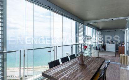Excepcional piso en la zona residencial más privilegiada de la costa de Barcelona. Situado en una de las plantas más altas en la Illa de la Llum, uno de los edificios más emblemáticos de la exclusiva zona residencial Diagonal Mar, este fantástico piso desarrolla un programa de vivienda completo y acorde a las necesidades habituales de hoy en día. La distribución separa de manera ordenada la zona de día y de noche. Dispone de 3 dormitorios dobles y 2 baños, uno de ellos en suite. Además de la cocina y salón, también hay una habitación para zona de lavado. Con vistas al mar y a la ciudad, una fantástica terraza a pie de salón y con salida desde todas las estancias, ofrece la posibilidad de ampliar la zona de día de manera cómoda y natural. Su acristalamiento permite disfrutar de este espacio como si fuera una parte más del interior de la vivienda aportándole más superficie. Las lamas orientables y correderas permiten convertirlo en un espacio interior dependiendo de las necesidades del momento. El complejo residencial dispone, además de vigilancia las 24horas, de una extensa zona comunitaria con piscina exterior climatizada, un gimnasio, una cancha de pádel y un club social e infantil. Para los amantes de la privacidad total y de la calidad de vida, este amplio apartamento reúne todas las características exigibles para una vivienda ideal en primera línea de mar de la ciudad de Barcelona. Entre el mar y el segundo mayor parque en extensión de Barcelona se erige la denominada Illa de la Llum: uno de los edificios que marcan el singular skyline de una de las zonas residenciales más reconocidas de Barcelona: Diagonal Mar. Su proximidad al mar, su excelente comunicación con la Ronda Litoral y a su vez con la red de transporte público (metro, autobuses y tranvía), así como su ubicación junto a uno de los mayores centros comerciales de la ciudad hacen de este complejo residencial un lugar ideal para vivir durante todo el año y también una excelente opción de segunda residencia para aquellos a quienes gusten disfrutar de la proximidad a la playa sin renunciar a las comodidades de una gran ciudad.