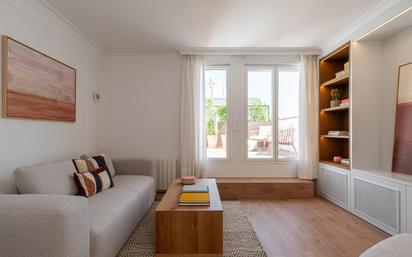 Directo de la propiedad - Ático de Diseño en la Mejor Zona de Chamberi En el corazón de Trafalgar, uno de los barrios más vibrantes y cotizados de Chamberí, se levanta esta auténtica joya: un ático único, situado en la tranquila y elegante zona triangular entre Quevedo, Bilbao y San Bernardo. La vivienda, una quinta planta ubicada en una finca clásica con ascensor, destaca por una reforma integral de altísimas calidades, pensada hasta el último detalle para ofrecer el máximo confort, cuenta con un amplio salón con salida directa a la terraza, a la derecha tenemos una cocina totalmente integrada, con una mesa alta llena de luz, armario gabanero y de ropa blanca, dos zonas de cocina completas, luego tenemos un distribuidor con doble armario (escobero y despensa) que da a la habitación y al baño. La habitación es grande, pues aparte de la cama de matrimonio, 6 hojas de armarios con diferentes secciones para cada prenda, vestidos en lino e iluminados con led por dentro. El baño tiene dos ventanas donde no para de entrar la luz. En total son siete ventanas, terraza, trastero, ascensor en finca clásica, con aislamiento integral en suelos, techos y paredes. Luz natural en todas las estancias, gracias a su orientación a los cuatro puntos cardinales. Espacios amplios y muy luminosos, diseñados para disfrutar del sol de Madrid a cualquier hora. Un ático que combina el encanto de la arquitectura clásica madrileña con la comodidad y diseño de un hogar contemporáneo. Ideal para quienes buscan vivir en una de las mejores zonas de Madrid, rodeados de vida de barrio, calles peatonales, cafés, mercados y todos los servicios a pie de calle. Para entrar a vivir, con electrodomésticos, muebles y todo lo que necesites. ¿Te imaginas tu nueva vida aquí? Contáctanos para concertar tu visita.