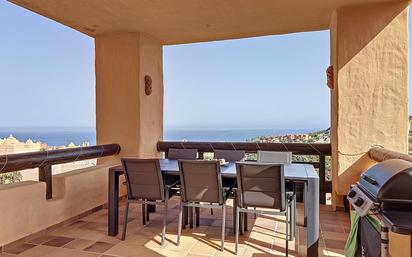 Se presenta un exclusivo ático en primera línea de golf, ubicado en Sabinillas, Manilva, en la provincia de Málaga. Esta propiedad destaca por su privilegiada localización, sus impresionantes vistas al mar y al campo, así como por sus amplios y luminosos espacios. Ideal para quienes buscan confort, seguridad y un entorno tranquilo, sin renunciar a la cercanía de la playa y todos los servicios. La vivienda cuenta con una superficie construida de 140 m², distribuidos en tres dormitorios con armarios empotrados y dos baños completos. El salón, de generosas dimensiones, da acceso a una espectacular terraza privada de 64 m², perfecta para disfrutar del clima mediterráneo y de las vistas panorámicas. La cocina está completamente equipada y dispone de un práctico lavadero. El ático se entrega totalmente amueblado, en excelente estado, y cuenta con aire acondicionado, persianas de seguridad y una entrada reforzada para mayor tranquilidad. Entre las zonas comunes, se encuentran una piscina y jardines cuidados, además de pistas de tenis y pádel para los amantes del deporte. La urbanización es cerrada, con servicio de seguridad 24 horas, cámaras de vigilancia y acceso restringido, lo que garantiza la máxima privacidad. El ático incluye una plaza de garaje privada, añadiendo un plus de comodidad. La ubicación es inmejorable, a pocos minutos del puerto, la playa, colegios y todo tipo de comercios y servicios. La zona ofrece una excelente calidad de vida, combinando tranquilidad, naturaleza y fácil acceso a las principales vías de comunicación. No deje pasar la oportunidad de visitar esta magnífica propiedad. Para más información o concertar una visita, no dude en ponerse en contacto.