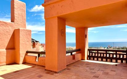 Ático en venta con vistas a toda la costa y al campo de golf La Duquesa, en San Luis de Sabinillas. A menos de 5 minutos en coche de la playa, encontrarás este ático de lujo en un entorno privilegiado, dentro de la localidad de San Luis de Sabinillas, en Manilva costa, pueblo pesquero andaluz limítrofe con la provincia de Cádiz, teniendo como vecina a la exclusiva urbanización de Sotogrande. Este ático, listo para mudarte y disfrutar de esta joya inmobiliaria, está distribuido en tres amplias habitaciones, dos baños, uno de ellos ensuite, cocina abierta al salón, amueblada y equipada, con lavadero exterior, además de, un gran salón con salida a la terraza de 40 m², aproximadamente, pudiendo disfrutar desde ella de vistas despejadas al mar y al campo de golf La Duquesa. Además, incluye dos plazas de garajes privada y dos trasteros, ubicados en la planta sótano del mismo edificio en el que está esta vivienda. Así mismo, cuenta con calidades y acabados de lujo, tales como: suelos de mármol, amplios ventanales y puertas correderas con acristalamiento climalit, que permite el paso de la luz natural durante el día, inundando de luz cada rincón de la vivienda, aire acondicionado frío-calor, chimenea en salón, hidromasaje en baño principal, baños alicatados en mármol, armarios empotrados y puerta de seguridad en la entrada. Además de todo esto, este ático de lujo forma parte de un residencial privado y cerrado que goza de una gran exclusividad y privacidad con vigilancia 24/7, con zonas comunes dotadas de piscinas comunitarias, pistas de pádel y numerosas hectáreas ajardinadas, así como, zonas asfaltadas habilitadas para pasear sin salir del recinto. Todo ello, a menos de 5 minutos en coche de la playa de San Luis de Sabinillas y del Puerto de La Duquesa, a tan solo 3 minutos en coche de zonas de comercios y servicios, colegios, institutos, restaurantes, bares y parques, rodeado de campos de golf de gran prestigio como el ya mencionado Club de Golf La Duquesa, así como, otros de las localidades vecinas de Sotogrande, Estepona y Casares costa. Además, está a menos de 10 minutos en coche del centro de Estepona y a tan solo una hora de aeropuertos internacionales y estaciones de tres como el aeropuerto internacional de Málaga y la Estación de tren Maria Zambrano. Si buscas una inversión en calidad de vida, dentro de una zona geográfica con más de 300 días al año de sol, que suponga una alta rentabilidad, este ático es tu opción ideal. *Los documentos gráficos que acompañan al presente no tienen carácter contractual, tan solo es informativo. La vivienda se vende sin amueblar. El PVP indicado en el presente anuncio no incluye impuestos, tasas ni gastos notariales.