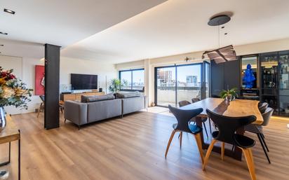 Vivienda de estilo moderno diseñada para brindar comodidad y sofisticación en cada detalle. Su distribución amplia y funcional potencia la luminosidad natural, creando espacios abiertos y acogedores. Destacan sus acabados de primera calidad, cuidadosamente seleccionados para ofrecer elegancia y durabilidad. Cada estancia ha sido pensada para proporcionar el máximo confort, contando con excelente climatización frío-calor que garantiza bienestar durante todo el año. El salón-comedor, amplio y luminoso, se convierte en el corazón del hogar gracias a sus grandes ventanales que aportan luz natural y vistas panorámicas desde un noveno piso. La terraza, con orientación sur, ofrece vistas despejadas de la ciudad y el mar. La cocina abierta, de diseño contemporáneo, cuenta con almacenamiento optimizado y equipamiento de primeras marcas. La propiedad dispone de 2 dormitorios grandes, destacando el principal por su baño en suite, con acabados modernos como ducha y bañera de Neolith. Además, incluye un encantador vestidor. El segundo baño, también de alta calidad, está equipado con una ducha y encimera de piedra natural gris zarci abujardada. Toda la vivienda cuenta con climatización frío/calor. El edificio dispone de ascensores y la propiedad incluye un parking en la primera planta. La renovación realizada en 2021/22 prestó especial atención a la calidad de los materiales, con la instalación de ventanas de doble acristalamiento, suelo laminado y piedra Zarzi en la terraza. La calefacción central de gas y el aire acondicionado aseguran un clima agradable durante todo el año. Entre las prestaciones adicionales destacan un descalcificador de agua, un sistema de ósmosis, un lavadero independiente y una plaza de aparcamiento privada con estación de carga para vehículos eléctricos. El edificio cuenta con servicio de portería de lunes a sábado.