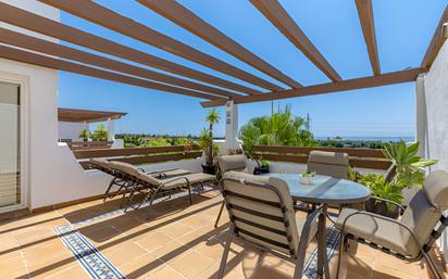 Descubre este luminoso ático con dos amplios dormitorios, idealmente ubicado en una zona tranquila y muy solicitada, cerca del mar y de acogedores restaurantes. La propiedad forma parte de un complejo residencial bien mantenido que ofrece exuberantes jardines, piscina comunitaria, gimnasio, sauna, así como garaje y trastero. En el interior, el apartamento cuenta con una moderna cocina totalmente equipada con lavadero independiente, un amplio salón con acceso a un soleado balcón y dos elegantes baños, uno de ellos en suite con el dormitorio principal. Los armarios empotrados proporcionan un amplio espacio de almacenamiento, y la cocina ofrece vistas a las hermosas zonas comunes y a la piscina. Con excelentes conexiones a Estepona, San Pedro y Puerto Banús, esta vivienda es perfecta tanto para residencia permanente como para escapadas vacacionales.