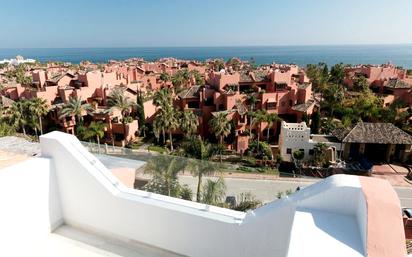 SM152487171 En venta elegante ático dúplex de 3 dormitorios totalmente reformado en la prestigiosa urbanización cerrada Las Nayades, en la Nueva Milla de Oro, a solo dos minutos andando de la playa. El complejo ofrece excelentes servicios: seguridad 24 horas, cuidados jardines tropicales, piscina exterior, piscina interior climatizada, gimnasio y sauna. Muy cerca se encuentra el paseo marítimo con tiendas, bares y restaurantes. El ático se distribuye en dos plantas: — Amplio salón-comedor con vistas panorámicas al mar y salida a una soleada terraza orientada al sur — Cocina moderna totalmente equipada — Dos dormitorios en la planta principal (uno con baño en suite) y un segundo baño — Tercer dormitorio en la planta superior con acceso a un impresionante solárium privado con vistas al mar y a Gibraltar Extras: sistema domótico, aire acondicionado frío/calor, alarma, armarios empotrados, persianas automáticas y plaza de garaje privada subterránea. Una propiedad ideal para quienes buscan calidad, confort y una ubicación privilegiada junto al mar con vistas espectaculares.
