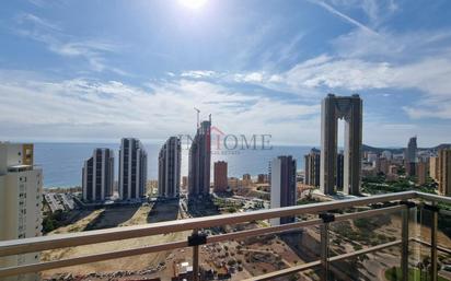 En venta magnifico Ático con vistas al mar en la playa de poniente, vivienda de 2 dormitorios, él dormitorio principal con vestidor, 2 baños, salón-comedor, cocina independiente con galería y terraza. Preinstalación de aire acondicionado. Plaza de garaje en planta sótano y trastero. Urbanización privada con piscina, parque infantil y pistas de tenis.