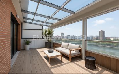 Ático de exclusivo diseño completamente reformado con acabados de lujo, muy luminoso y con magníficas vistas panorámicas de 360º. Situado en las dos últimas plantas, 10 y 11, y con entrada principal en la última planta y posibilidad en la planta décima. El piso superior ofrece un amplio despacho con techo acristalado junto al recibidor, creando un ambiente único, tanto de día como de noche, un elegante salón con una amplia zona de comedor, ambos con grandes ventanales, cocina completamente equipada con electrodomésticos de alta gama, encimeras y mesa de desayuno de Corian y un baño de cortesía da asistencia a esta planta. El acceso a las dos terrazas, con orientación Norte y Sur, se encuentra en la cocina y el salón-comedor. La terraza Sur dispone de una zona de relax y un cenador frente a l’Oceanogràfic con suelo y paredes en madera de IPE y totalmente cubierta por un techo con sistema de apertura automático y estores motorizados, de manera que se convierte en un espacio completamente cerrado. En la planta inferior, se encuentra la zona de noche, hay dos dormitorios, cada uno con su propio baño y armarios empotrados: el dormitorio principal es espacioso y cuenta con bañera de hidromasaje en el baño en suite, la otra habitación dispone de una cabina jacuzzi con baño de vapor entre otras funciones y zona de almacenaje. Una vivienda única en un enclave inmejorable en el centro de la ciudad, con servicio de conserjería en el edificio y aparcamiento privado con ascensor. Los accesos al aparcamiento y zaguán están controlados con video-vigilancia aportando a los vecinos total tranquilidad. Plaza de garaje y trastero disponibles en el edificio, incluidos en el precio. ¡Contáctenos! Situado en el Paseo de la Alameda, enfrente a la Ciudad de las Artes y las Ciencias, con magníficas vistas panorámicas 360º del litoral, que incluyen el puerto, el lago de la Albufera o las montañas de Cullera. La Ciudad de las Artes y las Ciencias es una zona emblemática de la capital valenciana. Es el área de expansión natural hacia el puerto y las zonas de playa. Ofrece a residentes y turistas una amplia gama de actividades culturales, educativas, deportivas y artísticas durante todo el año. Además, es única para realizar deportes y paseos al aire libre en los jardines del antiguo cauce del Río Turia, hoy convertido en un pulmón vegetal. La zona cuenta con centros comerciales como El Saler, Aqua o El Corte Inglés, l’Oceanogràfic, el Hemisfèric, el Ágora así como el Museo de las Ciencias Príncipe Felipe, fáciles vías de salida y entrada a la ciudad y comunicación con el centro histórico o las playas a través amplias vías en pocos minutos.