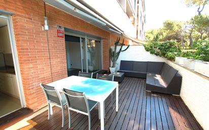 Descubre esta preciosa planta baja situada en una de las zonas más privilegiadas de Gavà Mar, a tan solo unos pasos de la playa. Una vivienda única que combina a la perfección comodidad, diseño y una ubicación inmejorable. Cabe destacar que el inmueble dispone de LICENCIA TURISTICA. La propiedad destaca por su luminosidad y sus amplios espacios exteriores, ideales para disfrutar del clima mediterráneo durante todo el año. Actualmente dispone de dos habitaciones (originalmente tres) y dos baños completos. El acogedor salón-comedor, con salida directa a la amplia terraza, invita a relajarse y compartir momentos en familia o con amigos. La cocina, totalmente equipada y también con acceso a la terraza, ofrece un espacio práctico y funcional. Uno de sus mayores atractivos es su jardín privado con salida directa a la zona comunitaria, donde podrás disfrutar de una gran piscina y zonas verdes. Además, la vivienda cuenta con una segunda terraza trasera de 40 m², a la que se accede desde la habitación principal, creando un rincón perfecto de intimidad y descanso. Totalmente reformada con materiales de alta calidad, la planta baja incluye: - Persianas eléctricas y toldo eléctrico - Aire acondicionado y calefacción - Suelos de parquet en toda la vivienda Si buscas una vivienda en la que la luz natural y la proximidad al mar sean protagonistas, esta planta baja es tu oportunidad. Vive en un entorno tranquilo y exclusivo, sin renunciar a todas las comodidades.
