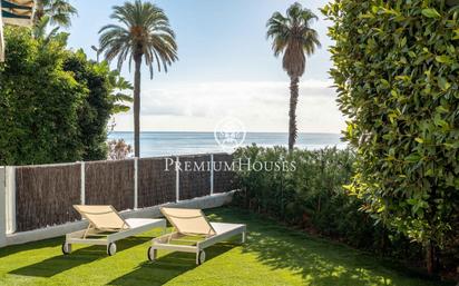 Planta baja con vistas al mar en el complejo residencial de Parc de Mar, al lado del Golf Terramar y en primera línea de mar. Su esplendido jardín privado de 209 m2, la salida directa desde el mismo al Paseo Marítimo y a la zona ajardinada de la urbanización, hacen de este piso una pieza singular y única. El complejo de Parc de Mar cuenta con vigilancia 24 horas, servicio de portería, varias piscinas y una gran zona ajardinadas con fuentes, lo que hacen del mismo una comunidad de referencia en Sitges. La propiedad está en perfecto estado de conservación y lista para entrar a vivir. Desde la entrada de la vivienda, a la derecha del recibidor, encontramos un amplio salón comedor con salida directa al jardín privado de grandes dimensiones, con vistas al mar, zona de barbacoa y un gran porche con zona de sofas y comedor de verano.También se encuentra la espaciosa cocina totalmente reformada y equipada, con lavadero independiente. A la izquierda del hall, tenemos 2 habitaciones dobles, 2 individuales y 3 baños completos. Todas las habitaciones tienen salida al jardín, que rodea todo el apartamento. La habitación principal cuenta con baño en suite. El resto de dormitorios comparten los otros 2 baños. La vivienda incluye 2 plazas de parking de gran tamaño y perfecta ubicación respecto a la puerta de entrada del edificio y a puerta del parking.