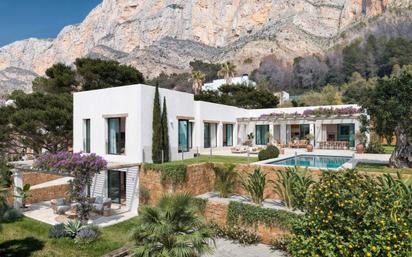 Villa de lujo de nueva construcción en venta en el soleado flanco sur del Montgó Experimenta el lujo y el confort en esta exclusiva villa de nueva construcción, situada en una generosa parcela de la prestigiosa urbanización El Garroferal. Esta hermosa villa está a sólo 3 km del encantador centro de Jávea. Desde la villa y sus exteriores disfrutarás de vistas panorámicas sobre el valle y las montañas circundantes en el lado sur. En el lado norte, las vistas están dominadas por los impresionantes acantilados del Montgó. Diseñada al detalle, esta villa ofrece todo lo que puedas desear. La planta baja cuenta con un amplio y luminoso salón-comedor que fluye a la perfección hacia una moderna cocina abierta. Desde las zonas de estar, grandes ventanales correderos conducen a una espaciosa terraza con una elegante pérgola, ideal para disfrutar del clima soleado. Directamente adyacente a la piscina privada, la terraza está perfectamente orientada al sur, lo que te permite disfrutar del sol todo el día. También en esta planta hay tres amplios dormitorios dobles, cada uno con baño en suite, y un aseo de invitados. Para mayor comodidad, también hay un garaje conectado directamente a la casa. En el semisótano hay un apartamento independiente que ofrece flexibilidad adicional. Este apartamento consta de un atractivo salón con cocina americana, un cómodo dormitorio y un moderno cuarto de baño. La terraza privada con pérgola ofrece un lugar agradable para relajarse, aislado de la casa principal. La licencia de obras se espera para febrero de 2025, y la finalización de esta exclusiva villa está prevista para marzo de 2026, sujeta a condiciones. Esta villa ofrece el equilibrio perfecto entre diseño moderno y comodidad. Ponte en contacto con nosotros hoy mismo para obtener más información y descubrir las posibilidades únicas de esta casa de ensueño.