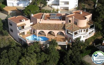 En Roses, en la Urbanización Mas Fumats, esta singular propiedad con una arquitectura local, estratégica mente situada, con unas vistas impresionantes al mar, dominando toda la Bahia de Roses y también la comarca del Empordá, y con una privacidad total. Construida por su actual propietario, muy reflexionada, con grandes terrazas al sol y también a la sombra, orientada para aprovechar al máximo las vistas y a resguardo de los vientos. Desde su entrada, con un imponente hall, accedemos al interior, compuesto de un salón, comedor, una acogedora biblioteca y un agradable rincón chimenea, todo ello complementado con grandes aberturas que le transfieren unas gran luminosidad con sus espectaculares vistas, un baño y una cocina separada con acceso a la cocina exterior de verano y zona piscina y una enorme habitación en suite con su vestidor. Desde el propio interior, bajamos una planta y tenemos la lavandería y cuarto de plancha, una habitación doble completa y acceso a un gran garaje. Dispone además de 3 grandes habitaciones con sus respectivos baños con acceso independiente de la propia vivienda, si bien se accede también a ellas desde la zona de terrazas, lo que proporciona privacidad e intimidad a sus habitantes.