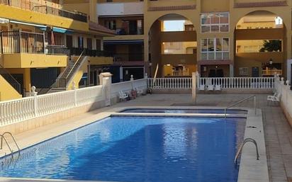 Descubre este encantador adosado situado a tan solo 200 metros de la Playa de La Mata en Torrevieja. Ubicado en la tranquila y deseada zona de Los Europeos, esta propiedad es ideal para disfrutar del sol y el mar todo el año. Con una superficie construida de 100 m² y útil de 90 m², cuenta con dos amplias habitaciones dobles y dos baños completos que ofrecen comodidad tanto para residentes como para huéspedes. El interior se encuentra en buen estado conservando un diseño funcional e acogedor; se deja amueblado junto con todos los utensilios necesarios tales como sábanas, toallas o menaje esencial. Disfruta del sur orientado al exterior donde encontrarás toldos que te brindan sombra durante las horas más cálidas así como ventiladores empotrados tanto en el salón como en cada habitación garantizando frescura constante incluso durante los meses estivales. Dentro del complejo comunitario podrás relajarte junto a tu familia o amigos disfrutando palpitantes días soleados alrededor de su espléndida piscina.Además tendrás acceso fácil gracias a servicios cercanos incluyendo autobuses locales,y centros comerciales variados. Cualquier persona interesada encontrará aquí no solo una casa vacacional sino también un hogar lleno potencial turístico. ¿Programamos su visita? Contacte para más información.
