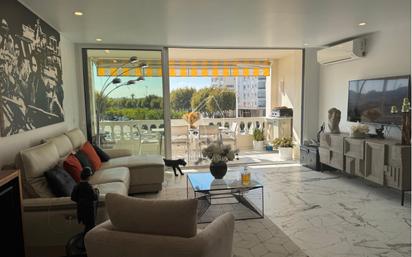 Dúplex d’excepció al cor d’Empuriabrava – Vistes espectaculars als canals Aquest magnífic dúplex, situat al centre d’Empuriabrava, destaca per la seva ubicació privilegiada vora l’aigua i les seves vistes panoràmiques als canals. Un espai únic on el confort modern s’uneix amb la serenor del paisatge marítim. Des del primer moment, la llum natural omple els espais interiors gràcies als grans finestrals que ofereixen una vista contínua dels vaixells i velers. Els amplis volums, els materials de gran qualitat i els acabatats acurats creen una atmosfera elegant i contemporània. L’habitatge disposa de tres habitacions, una d’elles suite principal amb gran vestidor i bany privat. Els dos banys, equipats amb dutxes a l’italiana, combinen comoditat i disseny. La cuina moderna i funcional, oberta a la sala d’estar, convida a la convivència tot preservant l’estil refinat de l’habitatge. Dues terrasses ben orientades prolonguen l’espai cap a l’exterior, oferint moments inoblidables davant dels canals. Aire condicionat, ascensor, plaça d’aparcament i ampli traster completen les prestacions d’aquesta propietat única. Un dúplex exclusiu i refinat, pensat per a aquells que busquen l’equilibri perfecte entre elegància, lluminositat i estil de vida vora el mar.