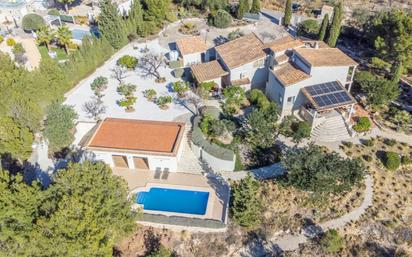 En el pintoresco pueblo de Aguas de Busot, a tan solo 22 km de Alicante y a tan solo 10 minutos en coche de la cautivadora costa, playas y puerto deportivo de El Campello, se encuentra una finca excepcional que comprende una espaciosa residencia principal con piscina privada y un edificio adicional, todo ello enclavado en 5000m2 de terreno privado exclusivo. Esta propiedad es una verdadera joya, ofreciendo una ubicación pintoresca, vistas despejadas, absoluta privacidad y una impresionante casa principal. La residencia principal cuenta con techos altos, un total de 5 habitaciones, jardines bellamente ajardinados y una orientación sur, creando el santuario perfecto cerca de la costa y del encantador pueblo de Aguas de Busot. Al entrar en la planta baja, un acogedor pasillo conduce a la zona de cocina-comedor-salón de planta abierta adornada con una chimenea y un techo doble que realza la sensación de amplitud. La cocina orientada al sur cuenta con una isla práctica y está completamente equipada. Desde la zona de comedor se accede directamente a una terraza elevada y cubierta que ofrece impresionantes vistas de los jardines, el campo y más allá. Esta planta también incluye dos habitaciones dobles, una amplia área de ocio con un altillo (casi 100m2) y dos cuartos de baño con ducha. Una de las habitaciones cerca de la entrada mide casi 24m2. Una naya exterior proporciona un entorno ideal para cenar al aire libre en verano, con vistas al jardín y a las montañas. Al ascender al primer piso, se descubren dos habitaciones dobles adicionales, una con baño privado y acceso a una terraza exterior cubierta con vistas al exuberante campo. Un espacioso espacio de trabajo/estudio con acceso a espacio de almacenamiento completa este nivel. La propiedad cuenta además con una amplia casa de piscina, con una habitación de generosas dimensiones y espacio de ducha privado, una zona de estar de planta abierta con cocina (de 41m2), que se abre a la terraza de la piscina. Un espacio de garaje para un automóvil y un taller independiente ofrecen espacios prácticos adicionales. El exterior de la finca incluye una piscina de forma rectangular (35m2) con escalones romanos y una terraza de casi 100m2 que rodea la piscina. Un camino de entrada permite estacionar varios autos, mientras que los jardines ajardinados ofrecen áreas designadas para relajarse y cenar, junto con un extenso huerto de frutales. Disfrute de vistas panorámicas del campo, las montañas, los jardines y vislumbres del mar a lo lejos. Esta propiedad es un refugio ideal para una familia numerosa o aquellos que valoran el espacio, con una anexo independiente y el potencial para una oficina en casa. Encarna la combinación perfecta de lujo, comodidad y funcionalidad en una ubicación muy solicitada. #ref:R4608220