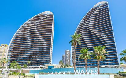 Inmobiliaria LES DUNES presenta este espectacular piso en la famosa y moderna urbanización Sunset Waves, con una situación privilegiada a unos 150 metros de la Playa de Poniente. El piso de unos 85 metros cuadrados ofrece 2 dormitorios, 2 cuartos de baño completos con suelos radiantes, amplio salón-comedor unido a una moderna cocina americana equipada. Desde el salón, tiene un acceso a un amplio balcón abierto donde se puede disfrutar unas vistas al mar espectaculares y al tiempo privilegiado de Benidorm todo el año. Además y para mayor comodidad, la vivienda tiene una plaza de garaje subterránea numerada y un trastero en la misma planta del piso. La urbanización muy moderna y completa cuenta con instalaciones de lujo, como una piscina exterior climatizada, sauna, jacuzzi, gimnasio, varias pistas polideportivas, tenis y paddle. No dude en contactarnos para más información y agendar una visita.