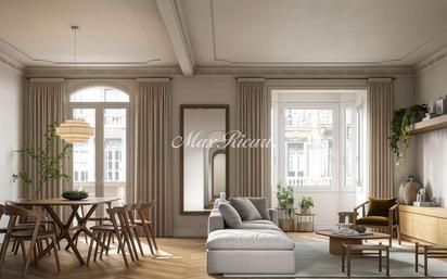 Este es un piso principal amplio, moderno y funcional combina un estilo moderno con elementos como molduras en los techos o ventanas clásicas. Con una superficie bien distribuida para una familia. La vivienda se organiza en torno a un vestíbulo central y presenta una clara separación entre las zonas de día y de noche. La distribución permite la entrada de luz natural a través de varias galerías y patios interiores, aportando mucha luminosidad. En la zona de día encontramos un gran salón de nos 40m2 aproximadamente con acceso a un balcón, seguido de una cocina semi abierta en formato lineal abierta a una zona de desayuno con mesa central y un cómodo comedor perfecto para 6 personas. La zona de noche esta compuesta por 4 habitaciones, un estudio y cuatro baños. Sus dormitorios están distribuidos en una master suite y una habitación doble con acceso a una amplia galería, una suite doble y una habitación individual. Además de un baño de cortesía. Todo ello hace esta propiedad un cómodo hogar para una familia