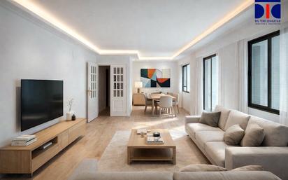 TOTALMENTE EXTERIOR. Reformable para hasta 5 habitaciones + 3 baños, con TERRAZA. Con vistas abiertas. Dos entradas. Magnífico, muy amplío, MUY LUMINOSO Y SOLEADO. Actualmente cuenta con TRES DORMITORIOS + SALA DE ESTAR (4 habitaciones) y DOS BAÑOS. Se puede reformar para conseguir hasta CINCO HABITACIONES + 3 BAÑOS. Se distribuye en detalle, en su estado actual, de la siguiente manera: - VESTÍBULO DE ENTRADA, con 2,42 m²., que da acceso al SALON al frente. - Gran SALÓN-COMEDOR (31,19 m²), dando a calle (suroeste). Con fachada de 9,50 m. en la que se disponen dos ventanas y una puerta balconera. Es extraordinariamente luminoso y soleado. Tiene una TERRAZA (3,60 m².) de unos 6 m. de largo. - El salón se continua aún más en la fachada en una SALA DE ESTAR (habitación 4), con 12,82 m²., abierta al anterior por una doble puerta corredera. - Al fondo a la derecha del salón, se abre el PASILLO, con una superficie de 7,03 m²., que da acceso al resto de piezas de la vivienda. - En la primera puerta de la derecha del pasillo encontramos la COCINA. De extraordinario tamaño, (20,54 m².) con espacio de sobra para una acogedora zona de comedor. Tiene entrada independiente desde las zonas comunes. - La HABITACIÓN 1, principal, se sitúa al fondo del pasillo, dando fachada a calle (noroeste). Es de muy grandes dimensiones (18,22 m².), tiene un muy buen armario empotrado y su BAÑO PROPIO (1) - El BAÑO 1, del dormitorio ppal., es también muy grande (9,08 m².), en correspondencia con su habitación. Tiene ventana al exterior y dispone de doble seno, lavabo, bidé y una gran bañera circular de hidromasaje. Tiene también un gran armario empotrado. - La HABITACIÓN 2 se sitúa a la izquierda del pasillo, dando fachada a calle (noroeste). Tiene una superficie de 8,34 m². - La HABITACIÓN 3 está al lado de la anterior. Es similar pero de tamaño algo inferior (7,71 m². ) - Finalmente, al inicio del pasillo, a la izquierda, se sitúa el segundo baño del piso (BAÑO 2), exterior, con ventana a calle y de 4,10 m². Tiene lavabo, inodoro, bidé y plato de ducha. La vivienda se encuentra en buen estado, pero para actualizar. También es susceptible de reforma, y mejora, pudiéndose conseguir hasta CINCO HABITACIONES + TRES BAÑOS, tal como se muestra en los planos orientativos de reformas posibles.