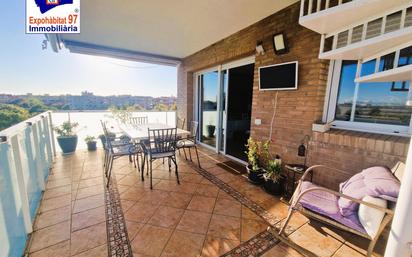 Ático único en el centro de Salou, muy luminoso y con espacios amplios. Dispone de una terraza espectacular y un estudio independiente ideal para invitados. La distribución se compone de gran salón-comedor con salida directa a una amplia terraza con toldos eléctricos, 2 habitaciones amplias exteriores y 1 habitación de matrimonio tipo suite con vestidor y baño con jacuzzi. Dispone de 1 baño completo en la vivienda principal (renovado con ducha) y una amplia y luminosa cocina independiente equipada con vitrocerámica, horno y lavavajillas. El estudio situado, completamente independiente, se encuentra en la planta superior y se compone de cocina americana integrada en el salón y un aseo. Este espacio es perfecto como zona de invitados, despacho o espacio de ocio. Prestaciones y equipamiento: Persianas eléctricas Doble techo Instalación preparada para aire por conductos Calefacción de gas ciudad con radiadores en todas las estancias En el precio se incluyen 2 plazas de parking en el mismo edificio y trastero doble de gran capacidad. Recinto comunitario con piscina y zona verde. SOLICITE INFORMACIÓN!!