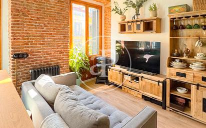 Exclusiva vivienda rehabilitada en el corazon de Madrid Desde aProperties ponemos a la venta esta magnifica propiedad completamente reformada y rehabilitada con materiales originales que conservan el encanto clásico combinado con las comodidades de un hogar moderno, junto al barrio de Lavapiés, una de las zonas residenciales y más castizas de Madrid. Se trata de una 3ª planta exterior de 69 metros cuadrados segun catastro, situada en un precioso y cuidado edificio de 1900 con ascensor. La zona de estar esta compuesta de un salon con la cocina integrada y completamente amueblada con electrodomesticos de alta gama (smeg) con techos de más de 3 metros de altura con pilares de madera y pared de ladrillo visto recuperada originales del edificio y dos balcones de suelo a techo con vistas a la calle Ave Maria y que con su orientacion este lo inuda de luz todo el año, creando un ambiente fluido, acogedor y perfecto tanto para el día a día como para recibir visitas. Los dos dormitorios de la vivienda cuentan con armarios hechos a medida hasta el techo con gran capacidad de almacenaje y el dormitorio principal en suite. Además el piso posee un segundo cuarto de baño independiente que da servicio al otro dormitorio y a las visitas. En esta vivienda debemos destacar la gran calidad de los materiales utilizados en la obra de reforma realizada para mantener su esencia así como sus acabados y el cuidado de los detalles, pensados para que el lujo se dé la mano con la sofisticación y la comodidad, resaltando, entre otras cosas, sus suelos hidraúlicos, ventanas de gran aislamiento termico y acustico, balcones originales, pilares de madera vista rehabilitados y Aire acondicionado por conductor, entre otras peculiariedades. Sin duda una casa magica, con encanto y modernidad que combina a la perfección amplitud y ubicación privilegiada, convirtiéndola en una opción ideal para familias que buscan una vivienda moderna y confortable en el corazón de Madrid, como para inversores que deseen una propiedad lista para entrar a vivir o alquilar. Lavapiés está ubicada dentro del más amplio barrio de Embajadores, en el distrito Centro de la capital. En el siglo XVIII también se conoció como barrio del Avapiés por la influencia de los sainetes de Don Ramón de la Cruz, volviendo a su antiguo nombre con el siglo XIX. Se ha considerado icono del «casticismo madrileño» y la «manolería». Marca su corazón la plaza de Lavapiés y su arteria más importante fue la calle Real de Lavapiés. Aunque no aparece como entidad administrativa oficial, Lavapiés se considera el área comprendida entre El Rastro, Tirso de Molina y el Museo Reina Sofía. ¿Te imaginas vivir aqui? Ref. VM2511020