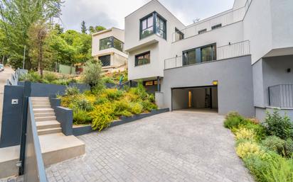 Oportunidad de adquirir una fantastica casa de obra nueva a estrenar ubicada en una zona ideal en la calle Torrent de la font del mont, a escasos metros del Colegio Montserrat, de la parada de FGC, de la carretera de las aguas y del parque natural de Collcerola. Zona residencial muy tranquila rodeada de bosque y a minutos del bullicio de la ciudad. La Casa cuenta con una parcela de 600 metros y tiene una superficie de 232 m2 distribuidos en 3 plantas. En la planta principal hay un gran salón-comedor con grandes ventanales con fantásticas vistas a las zonas verdes y con salida a la terraza; cocina independiente y equipada con salida a la terraza y un aseo de cortesía. Desde esta planta hay acceso a una zona ajardinada con piscina. En la segunda planta se encuentra la zona de noche con tres habitaciones: habitación de matrimonio en suite con armarios empotrados y baño completo; dos habitaciones dobles con salida a la terraza y que comparten un cuarto de baño. En la planta baja encontramos una habitación doble en suite, y la zona de lavado y plancha. En la misma planta tenemos el acceso a un amplio parking para 3-4 coches. La casa dispone de ascensor que llega a todas las plantas de la casa. Tiene instaladas placas solares en el terrado, calefacción y aire acondicionado mediante el sistema de aerotermia. Las ventanas oscilobatientes con doble cámara de aire que asila acústica y térmicamente, suelos de gres porcelánico, riego automático en el jardín, puerta automática para el acceso a la casa con el coche. Inmofinders.com
