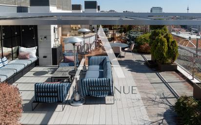 "Muchas de nuestras propiedades en venta no se encuentran en Idealista. Le invitamos a visitar nuestra web ‘THE AVENUE’ para acceder a nuestra selección completa." THE AVENUE Select Real estate, tiene el privilegio de presentarles una verdadera joya inmobiliaria: un ático dúplex en esquina, ubicado en una de las calles más emblemáticas del prestigioso barrio de Almagro. Este elegante hogar se encuentra resguardado en una finca que ofrece seguridad las 24 horas del día, garantizando la tranquilidad y comodidad de sus afortunados residentes. Desde el momento en que ponga un pie en esta propiedad, quedará cautivado por la amplitud de sus espacios y la luminosidad que inunda cada rincón, pero son las terrazas las que realmente hacen de esta vivienda algo excepcional. El hall de entrada le dará la bienvenida con su magnificencia y, al avanzar, se sumergirá en el grandioso salón, un espacio dividido en múltiples ambientes, incluido un comedor. La cocina, equipada con todos los electrodomésticos necesarios, combina practicidad y comodidad, incorporando una zona de lavado y un dormitorio de servicio. El dormitorio principal, un verdadero refugio de lujo que cuenta con dos baños en suite, un vestidor doble y una zona de estar privada. Además, encontramos otro espacioso dormitorio en suite con su zona de trabajo, así como un tercer dormitorio de generosas dimensiones con un baño en suite. La planta principal se despliega hacia una espectacular terraza perimetral, que culmina en un amplio rincón donde podrá disfrutar de las vistas que solo un ático en esquina puede ofrecer. Pero la verdadera sorpresa aguarda en la planta superior, a la que se accede cómodamente a través de una escalera interna. Aquí nos encontramos con una terraza que alberga una piscina exterior climatizada, una zona de bar completamente equipada, áreas de sofás, un comedor al aire libre y una zona cubierta que se transforma en un comedor de verano. Además, cuenta con un baño y una magnífica sala de cine, convirtiéndola en un espacio diseñado para el ocio. Para completar, esta propiedad incluye tres plazas de garaje dentro de la finca y tres trasteros. En resumen, esta vivienda es un testimonio del lujo, la exclusividad y el confort en su máxima expresión. Una oportunidad única que no debe pasarse por alto.