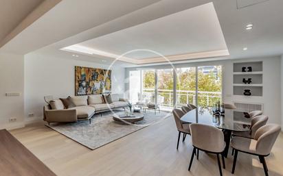 PISO LUMINOSO EN FINCA SEÑORIAL CON PLAZA DE GARAJE EN EL BARRIO DE SALAMANCA Presentamos esta magnífica propiedad ubicada en la afamada calle Serrano reformado a estrenar. Se trata de una quinta planta de 275 m² construidos según catastro con tan solo dos vecinos por planta en finca señorial de 1965. La vivienda ha sido reformada con altas calidades y está compuesta por un amplísimo salón comedor con una moderna cocina integrada de diseño marca Modulnova equipada con electrodomésticos de primeras marcas. Desde el salón se accede a una bonita terraza con vistas despejadas a los jardines del museo Lazaro Galdiano y orientación este que le aporta una gran luminosidad. La zona de noche la componen tres amplios dormitorios con su baño en suite además de un práctico aseo de cortesía y una fantástica zona de lavandería. Además, cuenta con una plaza de garaje en la misma finca en régimen de proindiviso y acceso directo. La calefacción es individual por gas y el aire acondicionado por conductos en todas las estancias. La vivienda se encuentra amueblada con un estilo sofisticado y moderno. Una gran oportunidad de adquirir una vivienda familiar en la zona más demandada de la capital, con gran oferta gastronómica, de ocio y comercial que le dan gran calidad de vida. ¿Te imaginas vivir aquí? Ref. VM2411088