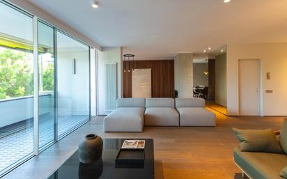 Elegancia, modernidad, privacidad, amplitud, ascensor directo, parking. Todo en una sola exclusiva vivienda, en una de las mejores zonas del barrio de Pedralbes, en la zona más elegante de Barcelona. Reformado a estrenar, con materiales nobles, equipos de primeras marcas y acabados de inmejorable calidad. Todo pensado para satisfacer al más exigente de los propietarios. Ubicado en la tercera planta de una preciosa finca rodeada de jardines y zonas verdes, cerca del monasterio de Pedralbes y la Avenida Pearson. A tres vientos, disfrutando de luz natural y vistas desde todas las estancias, con dos plazas de parking y trastero. Saliendo del ascensor se accede al recibidor y ya se nota la amplitud, elegancia y luminosidad de este increíble inmueble. Un ala la ocupa la zona de día compuesta por el salón de 50 metros con salida a una acogedora terraza con vistas a los jardines, comedor amplio con chimenea de gas. Junto a él, una espectacular cocina abierta con galería lavandería y zona de servicio con habitación y baño. Para los amantes del vino también se ha pensado en una pequeña vinoteca. La zona de noche, totalmente independiente consta de 5 dormitorios exteriores todos, con armarios empotrados, dos cuartos de baño completos hacen servicio a 4 dormitorios, y el principal dispone de su propio baño suite y vestidor. No se ha dejado nada al azar en esta reforma, manteniendo la elegancia original de la vivienda y aportando el toque moderno que muchos buscan. Para completar, se vende con dos plazas de parking amplias y un trastero. Además hay plazas de parking para invitados. La finca cuenta con servicio de conserjería
