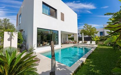 Esta espectacular casa combina diseño, amplitud y confort en un entorno privilegiado. Ubicada en una parcela de 430 m². Cuenta con dos plantas, jardín, piscina y aparcamiento exterior. ✅ Planta baja: -Amplio recibidor con vistas abiertas al living, cocina y jardín. -Salón con chimenea y dos ambientes, integrado a la cocina de diseño con encimera porcelánica. -Acceso directo al jardín y a la piscina orientados al sur. -1 habitación con armario empotrado y salida al jardín delantero. -Baño completo. -Sala de maquinaria y coladuría con salida lateral. ✅ Planta alta: -Distribuidor con acceso a 4 habitaciones dobles con armarios de alta calidad. -Habitaciones versátiles, con opción de unificarlas o separarlas mediante puertas correderas. -Master suite con vestidor, mirador y baño de diseño con ducha exterior bajo celosía artesanal. Calidades premium: -Carpintería de aluminio Cortizo. -Suelo radiante por aerotermia Panasonic. -Aire acondicionado frío/calor por conductos. -Piscina con cloración salina y regulador automático de pH. -Suelos porcelánicos. -Proyecto de jardinería con riego automático (Vivers Jardins d’Alfabia). -Ventiladores de techo en estancias clave. Ubicación inmejorable: a solo 200 metros de la playa, en una zona perfectamente comunicada. Una vivienda única, acogedora, luminosa y con todos los detalles pensados para convertirse en tu hogar ideal.