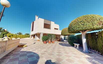 Te presentamos este impresionante chalet donde la parcela está pavimentada en su totalidad exceptuando los espacios de piscina y césped. Dispone de sombraje para coches , un pequeño frontón y una caseta trastero , para el resguardo de bicicletas, herramientas y aperos para el cuidado del jardín. Dispone de sótano, planta baja, primera planta, boardilla y terraza, todas ellas comunicadas por el interior con escalera, y ascensor. La planta baja está compuesta de galería, cocina con comedor, salón comedor con chimenea, sala de estar, una habitación y un baño completo. En la primera planta hay 5 habitaciones, 4 con dos baños completos en el pasillo, además del dormitorio principal que mide 45 m2 con un baño completo individual y un pequeño vestidor. Esta habitación tiene acceso a una terraza privada. El sótano además de la comunicación interior, tiene acceso desde el jardín por medio de rampa y entrada de coches. Está dotado de aire acondicionado individual y de chimenea-barbacoa de leña para celebraciones, dispone de ducha con agua caliente y fría y antena tv. El jardín consta de unos 350m rodeado de cipreses y arboles con sombra. ¡¡Todo esto a tan solo 3 minutos de Elche!!