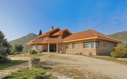 Magnífico chalet en Hoyo de Manzanares, ubicado en un privilegiado emplazamiento natural que linda con el Parque Regional de la Cuenca Alta del Manzanares. Vivienda distribuida en tres plantas, con una superficie de 687 m² construidos en parcela de 3.140 m². Construcción tradicional de estilo rústico, revestida con mampostería de granito y cubierta en teja curva a varias aguas. Cerramiento de la parcela con valla de mampostería de granito y cerramiento metálico. Jardín consolidado con pradera de césped, riego automático. Piscina y pista de Pádel. Espectaculares vistas a las formaciones montañosas “El Picazo” y “La Tortuga”. Dispone de 5 dormitorios todos en suite con baño, y 2 aseos. La distribución de la planta principal, con una superficie construida de 310 m², gira alrededor de un amplio hall abierto que divide en dos alas la vivienda. Distribución planta principal: Hall, aseo de cortesía, salón comedor con chimenea con una superficie de 72 m² con salida a terraza, cocina de 24 m², cuarto de plancha, y ala a zona de dormitorios con un amplio pasillo con cuatro armarios empotrados. Tres dormitorios secundarios en suite con baño y armarios empotrados; y dormitorio principal de 30 m², con zona de descanso, vestidor y baño. En la primera planta, con una superficie de 67 m², dispone de distribuidor, salón biblioteca con salida a una terraza corrida de 46 m², y dormitorio de servicio con baño. En la misma planta hay una zona en bruto, de otros 60 m², que dispone de acometidas de luz y bajantes para poder adapta como salón polivalente o más dormitorios. La planta semisótano, con una superficie de 310 m², tiene acceso por la zona de la cocina. Consta de salón con chimenea, bodega, amplio trastero, aseo, cuarto de caldera y garaje para 6 coches. Carpintería exterior en Aluminio con climalit, carpintería interior en madera. Suelos de barro cocido y tarima en dormitorios. Calefacción por aerotermia con apoyo de caldera de gasoil , y placas solares con capacidad de 6m4 KW. Próxima al casco urbano y a todos los servicios de Hoyo de Manzanares.