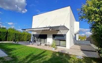 Espectacular chalet independiente en venta de 473 m2 útiles edificado sobre parcela de 1.000 m2. La vivienda se encuentra distribuida en tres plantas unidas interiormente por escalera con pasamano de acero inoxidable. La planta baja de 198 m2/u consta de amplio salón de doble altura con acceso a porche trasero, cocina office amueblada y lavadero, tres dormitorios con armarios empotrados, tres cuartos de baños, hall de entrada y pasillo distribuidor. La planta primera de 104 m2/u se distribuye en tres dormitorios, despacho, cuarto de baño con jacuzzi, cuatro terrazas exteriores, galeria con vista al salón y pasillo distribuidor. La planta sótano de 170 m2/u destinada a garaje con suelo de cemento pulido y puerta automática, sala de máquinas y trastero. Incorpora instalación de placas solares, portería interior lacada en blanco, calefacción individual de gas propano por suelo radiante, tres bombas de aire acondicionados frío/calor, (dos en planta baja y una en planta alta), armarios empotrados vestidos y forrados. Dispone de amplia zona trasera ajardinada con piscina exterior y cuarto de depuradora y aseo. Muy buen estado de conservación. #ref:28606