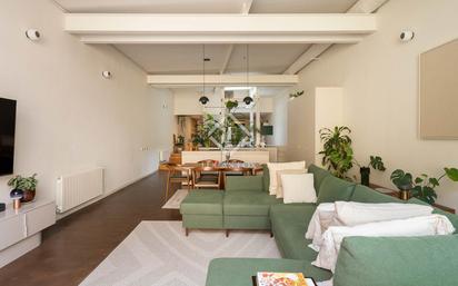 Esta vivienda única de 223 m² interiores y 40 m² de terrazas redefine el concepto de espacio contemporáneo a tan solo unos pasos de Sant Antoni. El proyecto combina con maestría el carácter industrial original con un diseño actual, cálido y funcional. El acceso a la finca se realiza a través de una reja hecha a medida, que anticipa el cuidado por el detalle presente en toda la propiedad. Al entrar, una espectacular escalera de caracol de madera maciza de anticuario conecta la planta principal con el altillo, donde se conserva la icónica volta catalana, también visible en la planta inferior. La zona de entrada cuenta con puerta de seguridad, lo que permite independizarla fácilmente del resto del piso y crear dos espacios autónomos, cada uno con baño y acceso propio, una opción ideal para quienes buscan versatilidad o una combinación de vivienda y espacio profesional. El eje central de la vivienda es la plataforma central, un espacio que articula la distribución y funciona como zona de paso, de aguas y de vegetación. En ella, una bañera para dos personas, bañada por luz natural gracias a una ventana Velux abatible con mando, se convierte en el punto focal de este entorno relajante. La zona de día se abre a un patio privado presidido por una cristalera de más de cinco metros de altura y doble acristalamiento, que inunda de luz natural todo el interior. Este espacio exterior alberga una piscina privada con depuradora, plenamente funcional y rodeada de vegetación, que aporta calma y privacidad en pleno centro de la ciudad. La cocina, concebida como una prolongación natural de la zona social, cuenta con placa de inducción Bosch, campana integrada y una amplia isla central, pensada tanto para cocinar como para disfrutar de un ambiente distendido con familia o amigos. Los baños, revestidos con microcemento verde Ingremic y mármol verde indio, desprenden una elegancia serena. El inodoro japonés automático del baño principal y los acabados de alta gama refuerzan la sensación de sofisticación y confort en cada detalle. La vivienda dispone además de una sala polivalente con gran capacidad de almacenaje, un aseo y salida directa al patio, así como acceso a la azotea comunitaria de la finca, ideal para disfrutar del sol y las vistas sobre el skyline barcelonés. Una propiedad singular que combina luz, diseño y autenticidad, ofreciendo una experiencia residencial única en una de las zonas más vibrantes y mejor conectadas de Barcelona.