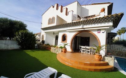 ¿Buscas una casa en la playa para tus vacaciones y escapadas de fin de semana? ¡Enhorabuena! Tenemos buenas noticias para ti: esta preciosa casa adosada esquinera con piscina a menos de 150 metros de la playa y del paseo marítimo, en el prestigioso barrio residencial Mediterrani, en Cambrils, con piscina comunitaria, jardín y amplio garaje. Sin duda su ubicación es excelente, a solo unos pasos cada día podrás disfrutar de la playa, de su paseo y del sonido de las olas del mar, un lujo al alcance de muy pocos. Se distribuye así, planta baja: recibidor, cocina independiente con salida a patio con barbacoa, baño con ducha y salón comedor con salida a amplia terraza. Zona de jardín y piscina. Esta terraza será uno de tus lugares favoritos de la casa para tus reuniones de familia y amigos, desayunos, cenas, comidas... para relajarte leyendo un buen libro, podrás disfrutar y descansar en ella. Planta primera: tres habitaciones y un baño completo con bañera. La habitación principal sale a una terraza y desde esa terraza se accede a otro solarium. Está equipada con placas solares, toldo eléctrico, climatización frío/calor en todas las plantas, armarios empotrados, etc. En la planta sótano dispone de amplio garaje con puertas motorizadas para que en temporada alta no tengas problemas para aparcar y una habitación auxiliar para utilizarla según las necesidades de cada familia. Si ya te estás imaginando disfrutando de esta casa, de su terraza, de la playa y el sol... no lo dudes más, llama y vamos a verla hoy mismo.