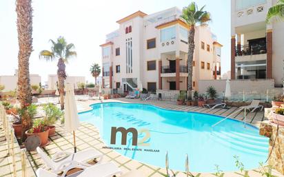 Descubre esta magnífica vivienda situada en una de las urbanizaciones más prestigiosas y demandadas de Guardamar del Segura: Marjal Beach Residencial 2, un entorno de lujo a tan solo 700 metros de la playa. Ubicado en primera planta con ascensor y en posición de esquina, este apartamento destaca por su excelente luminosidad y distribución. Cuenta con un amplio salón-comedor con cocina de concepto abierto, perfectamente integrada, creando un espacio moderno y funcional ideal para el día a día y para recibir invitados. La vivienda dispone de dos dormitorios con armarios empotrados y dos baños completos, uno de ellos en suite, ofreciendo comodidad y privacidad. Su gran terraza es el lugar perfecto para disfrutar del clima mediterráneo durante todo el año. Incluye plaza de garaje y trastero en el sótano del edificio, aportando un plus de comodidad y espacio de almacenamiento. La urbanización ofrece completas zonas comunes de alto nivel: piscina exterior, piscina climatizada, sauna y amplias zonas ajardinadas cuidadosamente mantenidas, creando un entorno exclusivo y relajante. Una oportunidad única para vivir o invertir en un enclave privilegiado de la Costa Blanca.