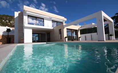 Nueva construcción. Preciosa villa de estilo moderno, realizada con acabados y materiales de alta calidad. Consta de 3 dormitorios dobles, 3 baños, aseo de cortesía, salón-comedor, cocina abierta, terrazas, piscina, barbacoa, lavadero y sala de máquinas. Calefacción por suelo radiante, A/A, persianas eléctricas[IW]