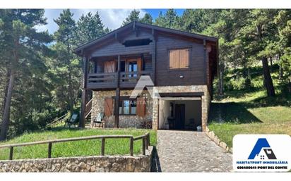 Casa de madera con encanto en Port del Comte - Con terreno y vistas espectaculares Se vende preciosa casa rústica situada en medio de la naturaleza, en Port del Comte, una zona ideal para desconectar y disfrutar de la montaña todo el año. La vivienda cuenta con 700 m² de terreno privado, perfecto para disfrutar de espacios exteriores, jardín o zona de descanso. Dispone de 3 habitaciones dobles, 2 baños, cocina totalmente equipada y un amplio comedor con chimenea y salida directa a un balcón con magníficas vistas. También incluye garaje privado, ideal para mayor comodidad durante todo el año. Una casa cálida, funcional y con mucho encanto, rodeada de tranquilidad y naturaleza. Perfecta tanto para primera como para segunda residencia, en una zona fantástica para hacer excursiones, esquiar o simplemente relajarse. La casa se encuentra en el Sector I de Port del Comte, una zona que aún está pendiente de urbanización, especialmente del asfaltado de las calles. Cuando los propietarios y el Ayuntamiento lleguen a un acuerdo, se iniciará el proceso de urbanización. A pesar de ello, la calle ya cuenta con luz y con las canalizaciones de aguas limpias y aguas residuales. Además, los propietarios ponen a la venta una casa + parcela por 260.000 €. ¡Llámanos y solicita información! Servicios cercanos: Hotel Avet a solo 2 minutos. Estación de esquí de Port del Comte a 5 minutos. Sant Llorenç de Morunys, con todos los servicios disponibles, a 25 minutos. Solsona a 30 minutos.