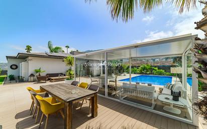 Esta villa de una planta a las afueras de Puerto de la Cruz combina líneas modernas con un estilo acogedor. Dispone de 4 habitaciones, 2 baños (incluyendo una suite principal) y una cocina de diseño actual, concebida para quienes valoran la comodidad diaria y la amplitud. Su emplazamiento en una calle secundaria garantiza privacidad y tranquilidad, manteniendo al mismo tiempo la cercanía a servicios clave: centro comercial La Villa, colegios, restaurantes y centro de salud, todos accesibles en pocos minutos en coche. El interior destaca por la luminosidad y la fluidez de sus espacios. La zona de estar se conecta con la cocina, creando un ambiente abierto y funcional. Los dormitorios transmiten calma y el baño en suite aporta un extra de intimidad. En el exterior, el jardín ajardinado con palmeras se convierte en un auténtico refugio. La piscina, construida e iluminada en 2024, con unas generosas dimensiones de 5 x 10 metros, se calienta mediante una bomba de calor, lo que permite disfrutar del baño durante todo el año. La amplia terraza con una pérgola de cristal de diseño, el área chill out, y varios asientos invitan a momentos de relax y encuentros con amigos o familia. La amplia cochera con capacidad para tres vehículos refuerza la practicidad del conjunto, En la estación de recarga eléctrica también disponible, puede recargar sus vehículos eléctricos de forma económica.. Esta propiedad construida en 2009 concebida para quienes buscan un hogar que combine estilo, comodidad y calidad de vida, tanto en el interior como en los espacios al aire libre. Solicite más información o programe una visita para apreciar en detalle esta magnífica propiedad. IBI: €700/año. Referencia Asten: 9511.