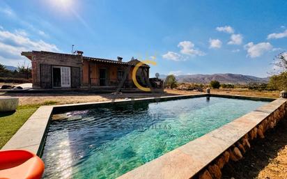 Alicante Country Villas se complace en presentarle esta coqueta casa de campo situada a tan solo 5 min en coche de la población de La Romana y a 30 min del aeropuerto y playas. La parcela de 2300m2 se encuentra completamente vallada y accedemos a su interior a través de una puerta automática. En su interior observamos una vivienda de 100m2 aprox, una piscina de 7x3 forrada de porcelánico y un amplio salón/barbacoa. Accedemos a la vivienda a través de un amplio porche a través de una puerta de seguridad dandonos acceso a un amplio y luminoso salón/comedor con acceso a una cocina/offoce completamente equipada y con puertas de acceso al exterior. Desde el salón, accedemos a un dormitorio principal con vestidor, que a su vez puede convertirse en un baño, a un dormitorio sencillo y a un baño con ducha. Desde un lateral de la vivienda accedemos a un baño/cuarto de galería exterior y a un dormitorio. La propiedad dispone de aspersores para riego en gran parte de la parcela. No pierdas la oportunidad de visitar esta fantastica vivienda lista para mudarse! #ref:DNV0600