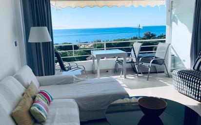 One-Bedroom Apartment with Tourist License – Excellent Location Discover this charming one-bedroom apartment with a valid tourist license, perfectly situated just a 10-minute walk from the beach and a 5-minute drive to nearby golf courses. The apartment offers a comfortable layout featuring: One bedroom with en-suite bathroom (also accessible from the hall) Open-plan kitchen seamlessly connected to the lounge and dining area, leading directly to the balcony Spacious private terrace with stunning views Convenience is at your doorstep: the nearest shop is just a 2-minute walk away, and a bus stop is also only 2 minutes on foot. Additional features include: Communal parking Shared pool and landscaped gardens This property is ideal as a holiday home, a lucrative rental investment, or a cozy residence close to the coast.