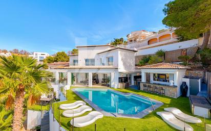 Casa de lujo en venta en Moraira, con vistas al mar y a la montaña. Esta magnífica villa combina elegancia, confort y espectaculares vistas panorámicas del mar Mediterráneo y el Peñón de Ifach. Ubicada en una tranquila zona residencial, ofrece total privacidad y un diseño orientado a maximizar la luz y el entorno natural. Construida en una parcela de 847 m², la propiedad cuenta con más de 300 m² distribuidos en tres plantas, con espacios amplios y luminosos perfectamente conectados a las terrazas exteriores. Cada rincón ha sido diseñado con materiales de alta calidad y un estilo contemporáneo que aporta calidez y sofisticación. En el exterior, la gran terraza con una piscina privada, bar y zona de barbacoa invita a la relajación mientras se disfrutan de las espectaculares vistas al mar. Es una casa perfecta tanto para vivir todo el año como para disfrutar de una estancia vacacional exclusiva. Aspectos destacados de la villa Parcela de 847 m² y más de 300 m² construidos5 dormitorios con baños en suite + 2 aseos de invitadosAmplio salón-comedor con acceso directo a las terrazasCocina abierta totalmente equipadaPiscina privada, bar y zona de barbacoaDucha exterior y garaje dobleCalefacción por suelo radiante, aire acondicionado, persianas eléctricasVentanas de doble acristalamiento, alarma y puerta de seguridadConstruida en 2008 y renovada en 2016Vistas panorámicas al mar y al Peñón de IfachAcabados de alta calidadUna propiedad perfecta para aquellos que buscan una villa moderna con todas las comodidades y vistas al mar inmejorables.