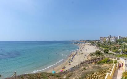 Fantástico Apartamento con vistas panorámicas al mar en primera línea. Planta segunda , orientación sur. El apartamento de 91m2, cuenta con tres dormitorios, dos baños completos (uno en suite), cocina independiente, equipada, salón-comedor y la terraza de unos 15m2. A/A en el salón. Se vende parcialmente amueblado. El residencial con piscina se encuentra justo encima de la playa de Aguamarina y de Campoamor, con accesos privados directos a la playa. El apartamento dispone de plaza de parking y trastero.~