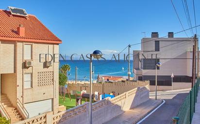 Descubra esta encantadora casa adosada de una sola planta, estilo bungaló en planta baja, situada en la muy codiciada zona de Cabo Huertas, Alicante, a solo 100 metros de las playas de arena fina. Ubicada en una pequeña urbanización privada y tranquila, esta propiedad de 190 m² muy bien cuidada ofrece la combinación perfecta entre el estilo mediterráneo clásico y el confort diario. La vivienda cuenta con 3 dormitorios con armarios empotrados y 2 baños. El dormitorio principal y el de invitados tienen unas vistas preciosas al mar. La amplia cocina, totalmente equipada, cuenta con encimera de piedra, ventanas de doble acristalamiento y un lavadero contiguo. La acogedora sala de estar conecta directamente con un precioso patio con jardín, ideal para relajarse o disfrutar al aire libre. Debajo de la propiedad, un garaje privado de 20 m² ofrece un aparcamiento seguro y acceso directo a un versátil espacio de oficina, un amplio trastero y unas escaleras internas que conducen a la planta principal, una excelente configuración para trabajar desde casa o para una mayor practicidad. Cuidada con mimo por su propietario durante muchos años, esta vivienda es una oportunidad única para disfrutar de la vida costera en uno de los barrios más prestigiosos de Alicante, con playas, paseos por la naturaleza y servicios a un paso.