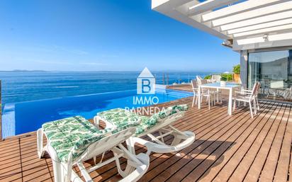 Esta impresionante villa moderna está situada en una ubicación privilegiada, casi en primera línea de mar, entre las exclusivas calas de Canyelles y Almadrava, en Roses. Diseñada para ofrecer el máximo confort y disfrutar de unas vistas panorámicas al Mediterráneo, esta propiedad combina elegancia, funcionalidad y un estilo de vida relajado frente al mar. Desde la calle principal se accede directamente a la entrada de la propiedad, donde encontramos un amplio espacio de aparcamiento exterior con capacidad para 2 o 3 vehículos. Desde aquí, una escalera exterior desciende hasta la entrada principal de la vivienda. Planta principal Al entrar en la casa, nos recibe un ambiente moderno y luminoso. En esta planta se encuentra un dormitorio doble con acceso directo a la terraza, desde donde se disfrutan unas vistas espectaculares al mar. Junto a él, un baño completo de diseño actual. La cocina, moderna, elegante y completamente equipada, se abre a un espacioso salón-comedor con grandes ventanales que inundan el espacio de luz natural y permiten contemplar el mar desde el interior. Desde el salón se accede directamente a la gran terraza principal y a la fabulosa piscina de borde infinito con agua salada, que se funde visualmente con el horizonte marítimo. Planta inferior La planta baja alberga la zona de noche principal. Aquí encontramos tres amplios dormitorios, uno de ellos en suite con su propio baño privado. Esta planta también cuenta con un segundo baño completo que da servicio a las otras dos habitaciones. Además, dispone de una práctica sala de lavandería, una sala de billar y un segundo salón, perfecto como zona de descanso, juegos o televisión. Desde esta planta también se puede acceder al garaje cerrado, situado en la parte más baja de la parcela, mediante una escalera exterior. Exteriores y equipamiento La villa se asienta sobre una parcela de aproximadamente 620 m² y ofrece diferentes espacios exteriores diseñados para disfrutar del clima mediterráneo, la tranquilidad y las vistas. La piscina infinita de agua salada es sin duda uno de los puntos más destacados de esta propiedad, perfecta para relajarse mientras se contempla el mar. La propiedad está equipada con aire acondicionado centralizado, frío/calor, acabados de alta calidad, y amplios ventanales que potencian la luz natural en cada estancia. Además, en tan solo dos minutos caminando se puede acceder al mar a través de unas escaleras cercanas. Licencia turística La villa dispone de licencia turística en vigor, lo que permite su alquiler legal como alojamiento vacacional. Gracias a su ubicación, características y vistas, representa una excelente oportunidad de inversión con gran potencial de rentabilidad. Una propiedad única, diseñada para disfrutar del mar y del confort en un entorno privilegiado de la Costa Brava. Ideal tanto como residencia habitual o segunda residencia, como inversión de lujo con alta demanda turística.