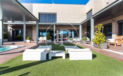 Aproperties les presenta esta casa independiente llena de lujo y confort: buen gusto, privacidad, diseño y tecnología punta domótica. Desde la entrada accedemos a la zona exterior de la casa que combina partes de jardin, uno de ellos japonés con un huerto y zonas de terraza revestidas con porcelanico de gran calidad. La fantástica fachada inclinada, con muro cortina acristalado, rodea una elegante puerta blindada. Luego un vestíbulo de 6 metros de altura une al salón comedor, su atractiva decoración y detalles prácticos. Hay un espejo cuyo ancho marco funciona como calefactor y diez radiadores de diseño en vertical se elevan hasta el techo. Un colector solar de tubos de vacío alimenta la calefacción y climatiza la piscina. Un potente aire acondicionado con frío y calor alcanza con rapidez la temperatura deseada. Múltiples aberturas Technal acristaladas iluminan el salón y el resto de estancias, con suelo de parqué en madera de teka de primera calidad. El dormitorio principal es muy acogedor. Su cama central, ventanales al jardín, el vestidor o el precioso baño en suite en piedra natural, harán las delicias de cualquiera. La enorme cocina americana, con isla central, juega al contraste de tonos y ofrece aparatos de las mejores marcas, todos ellos panelados manteniendo el diseño y elegancia en la misma. Unas cómodas escaleras de diseño llevan a una gran habitación con baño en suite y a un amplio despacho junto a otra preciosa habitación donde veremos el mar y la bahía. En el semisótano aguarda una sala con barra de bar, gimnasio y equipada como sala de cine. Otro de los atractivos de esta propiedad es su imponente garaje, que dispone de una zona de siete armarios empotrados totalmente vestidos para usar como vestidor de apoyo, en el resto del espacio hay un parking para seis coches además de un taller. Fuera de la vivienda la calidad no decae. Piscina jacuzzi para relax o nadar contra chorros. Solárium, césped, jardín para cenas, comedor exterior y todas estas zonas cubiertas por porches con alta calidad de porcelánicos. Toda esta área esta directamente conectada con nuestro salón y vestíbulo por amplios ventanales correderos, que nos dan la posibilidad de hacer una casa totalmente abierta. En el lateral también conectado con el exterior disponemos de una sala de estar junto al cuarto de plancha ideal para dar alojmiento al personal que trabaje para la vivienda. Sin duda alguna, la casa de sus sueños, con unas vistas privilegiadas al alcance de muy pocas propiedades. Ref. VV2211053