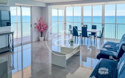 PISO EN VENTA EN LAS PALMERAS AProperties se complace en presentar este exclusivo apartamento en primera línea de playa, en el Paseo Marítimo de Las Palmeras. Vive frente al mar en este espectacular apartamento totalmente reformado de 131 m², según catastro, ubicado en una increíble planta 14. La vivienda ofrece vistas panorámicas al mar y cuenta con tres amplias terrazas, ideales para disfrutar del amanecer o de las puestas de sol. Su moderno diseño interior combina elegancia y confort: Luminoso salón-comedor con grandes ventanales y acceso directo a la terraza. Cocina abierta con isla central, completamente equipada con electrodomésticos. Dos dormitorios exteriores y dos baños, uno de ellos en suite en la habitación principal. La propiedad dispone de aire acondicionado. Destaca por su luminosidad, su cuidada reforma integral y su ubicación privilegiada en primera línea de playa, donde podrás disfrutar de la brisa marina y la tranquilidad del entorno, con todos los servicios a pie de calle. Una propiedad única para quienes buscan lujo, comodidad y vistas inigualables al Mediterráneo. Las Palmeras es una zona residencial y de veraneo situada cerca de El Saler, El Perelló y Cullera. Junto al Parque Natural de la Albufera, es una población tranquila y familiar que ofrece todos los servicios de primera necesidad tanto en verano como en invierno: supermercado, centro de salud, farmacia, transporte público, carnicerías, pescadería y los famosos hornos típicos de la zona. A 5 minutos de Sueca, 10 minutos de Cullera, 15 minutos de El Saler (Parque Natural de la Albufera) y 30 minutos de Valencia. Si desea realizar una visita o ampliar información, póngase en contacto con nosotros, estaremos encantados de atenderle. Ref. VV2511004