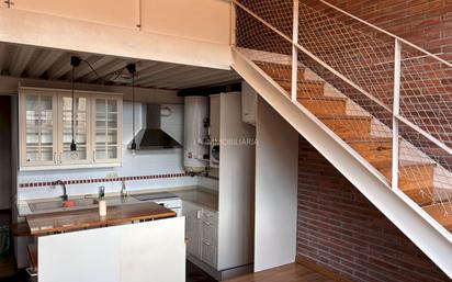 Loft de estilo industrial construido en el año 2007, con 81 m² de superficie construida y distribuido en planta baja y altillo. En la planta baja (56 m²) encontramos una cocina office equipada y abierta al salón-comedor, una habitación individual y un baño completo con ducha. El altillo (25 m²) es un espacio diafano actualmente organitzado en dos ambientes diferenciados, uno de ellos con armarios empotrados, que se pueden destinar a dos habitaciones o una habitación y despacho. Los suelos son de parquet, excepto en el baño, que es de gres. Las ventanas de aluminio amb doble cristal y grandes ventanales. La calefacción es eléctrica radiante y también cuenta con estufa de pelet. Se trata de un loft práctico, muy cómodo y bien ubicado, en el centro del pueblo.
